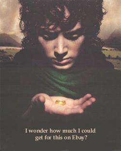 Oh god, another useless column that strings together a bunch of words so the writer can make a paycheck and the publication can fill some white space and drag some eyes to its adverts. This time the publication in question is This is London, and the subject is J.R.R. Tolkien vs. J.K. Rowling. There are (all together now) several inaccuracies in this little thing. One: both authors did not feature "a young, innocent hero." The only version of Lord of the Rings where Frodo is both young and innocent is the current movie version. In the books Frodo is actually nearly fifty, which in "hobbit years" is meant to represent a period of past youth but not middle age -- say, equivalent to a human in his mid-thirties. Obviously, this Malcolm Burgess fellow has not bothered to do the most cursory research before he typed up his column. I daresay he would not even have had to read the actual book to find out Frodo's actual age; he could probably have found a fan site on the internet with more info than he needed or wanted.